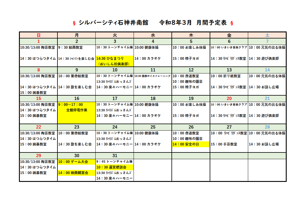 「3月月間予定表 」